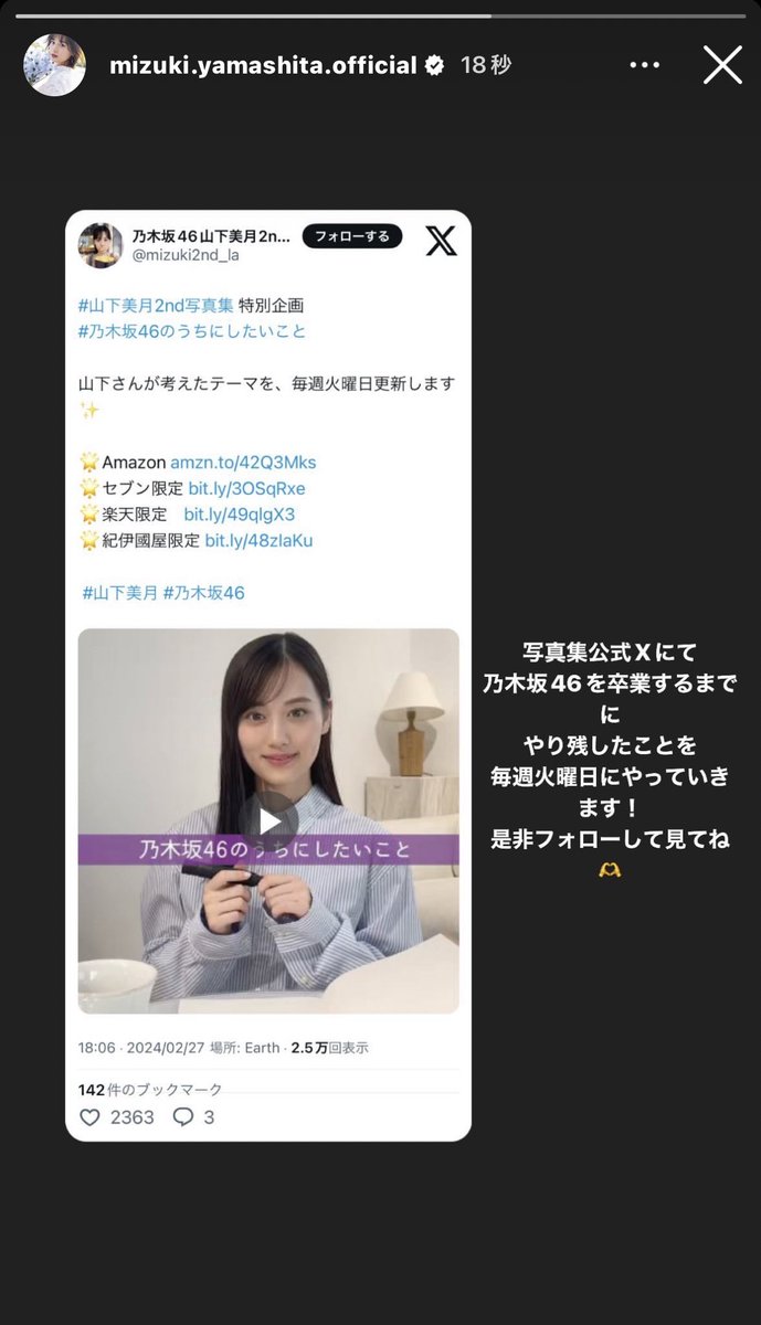 山下美月ちゃんの特別企画キタ━(゚∀゚)━!【乃木坂46】 2024年02月27日 19:37 おすすめ記事 278: 名無し ID:QoM2vOEmd 動画 281: 名無し ID:Vr3mNox00 ツインテール、ファンイベント? 乃木坂は何だろう 282: 名無し ID:QoM2vOEmd 山下美月インスタストーリー 写真集公式Xにて 乃木坂46を卒業するまでに やり残したことを 毎週火曜日にやっていき ます! 是非フォローして見てね おすすめ記事 引用元:http://toro.2ch.sc/nogizaka/ 引用元:https://talk.jp/boards/nogizaka/ 【楽天ブックス限定特典】乃木坂46山下美月2nd写真集(ポストカード)価格:2,500円(税込、送料無料) (2024/2/26時点) 楽天で購入 【楽天ブックス限定特典】乃木坂46 5期生写真集「あの頃、乃木坂にいた」(限定カバー) [ マガジンハウス ] 楽天で購入 【和テイストチーズ2種3個】【元乃木坂46 白石麻衣さんお取り寄せの品!】チョコ以外 プレゼント バレンタイン ホワイトデー 母の日 父の日 おつまみ チーズ 甘くない プレゼント 国産 お酒 日本酒 ワイン ギフト 内祝い お酒 送料無料 プチギフト 牧成舎 楽天で購入 【乃木坂配信中で紹介】 ベーグルサンド 【 オリジナル ケーキ セット 5個 】 送料無料 新商品 ご褒美 贈り物 冷凍 パンダイエット 詰め合わせ プレゼント ギフト カフェ 誕生日 お歳暮 福袋 お取り寄せ 生地には 卵 油脂 乳 不使用 ベーグル パン 2024 パン 高級 楽天で購入 「乃木坂46」カテゴリの最新記事 タグ :#山下美月 < 前の記事次の記事 > コメント コメント一覧 (1) 1. 名無しの情報通 2024年02月28日 05:16 ≫282 良いね。 これから楽しみ。 0 sakamichijyoho4 6 がしました コメントフォーム 名前 コメント 記事の評価 リセット リセット 顔 星 情報を記憶 コメントを投稿する